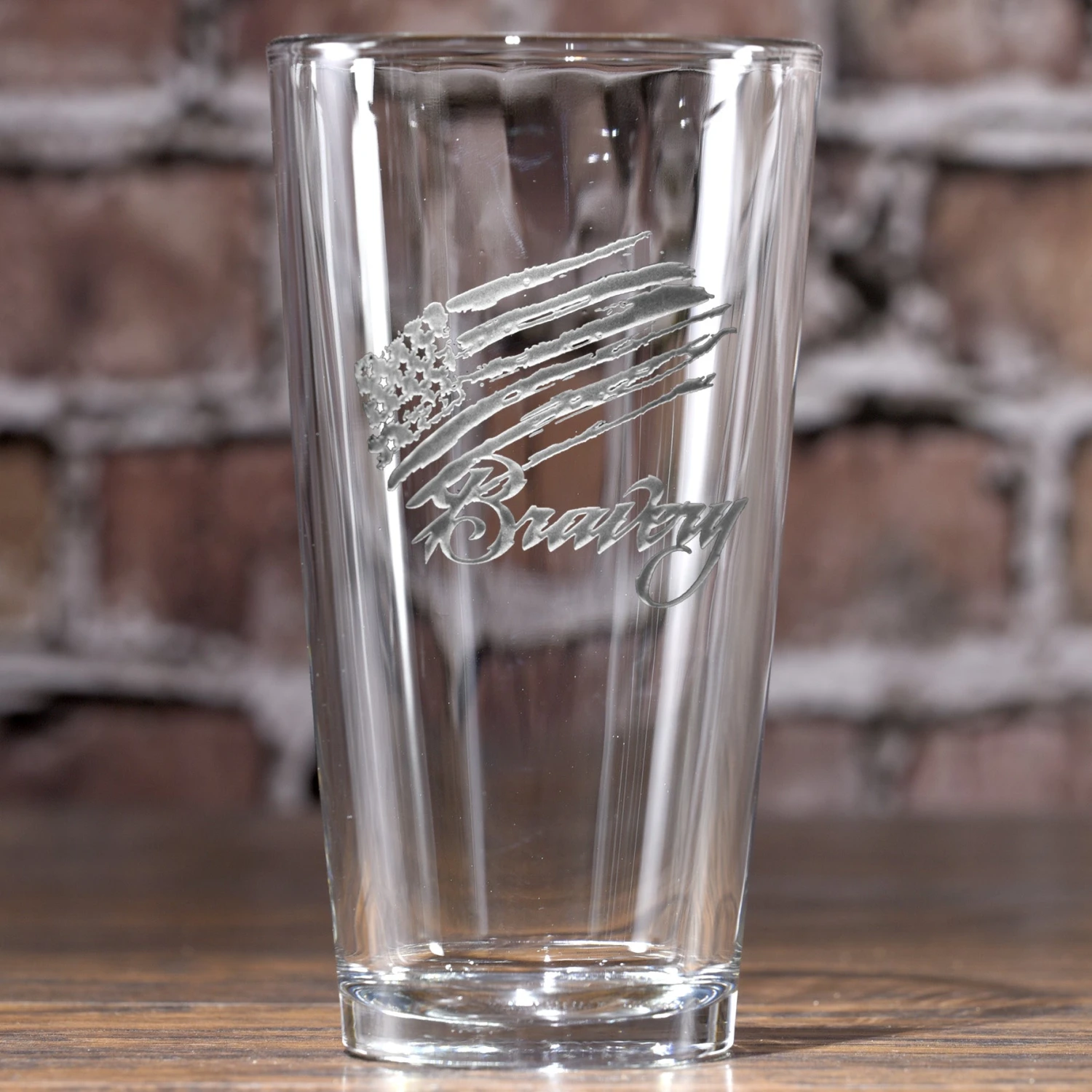 This engraved Bravery Flag Stars and Stripes Pint Beer Glass is a great Americana gift for our loyal freedom and liberty loving American patriot. This beer or cocktail glass features a tattered and torn USA flag, proudly showing the bravery of our citizens. Our badass USA barware line by Crystal Imagery is a classy gift for military personnel, police officers and other red-blooded Americans who proudly tout their loyalty to our flag and country. Deeply carved using our sand carving technique, each pub glass is meticulously custom made to order making it the perfect gift for those seeking unique gift ideas for beer lovers – men and women alike. Dishwasher safe but we recommend hand washing.