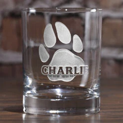 Dog’s Name And Paw Print On Whiskey Glass Gift For Puppy Lovers