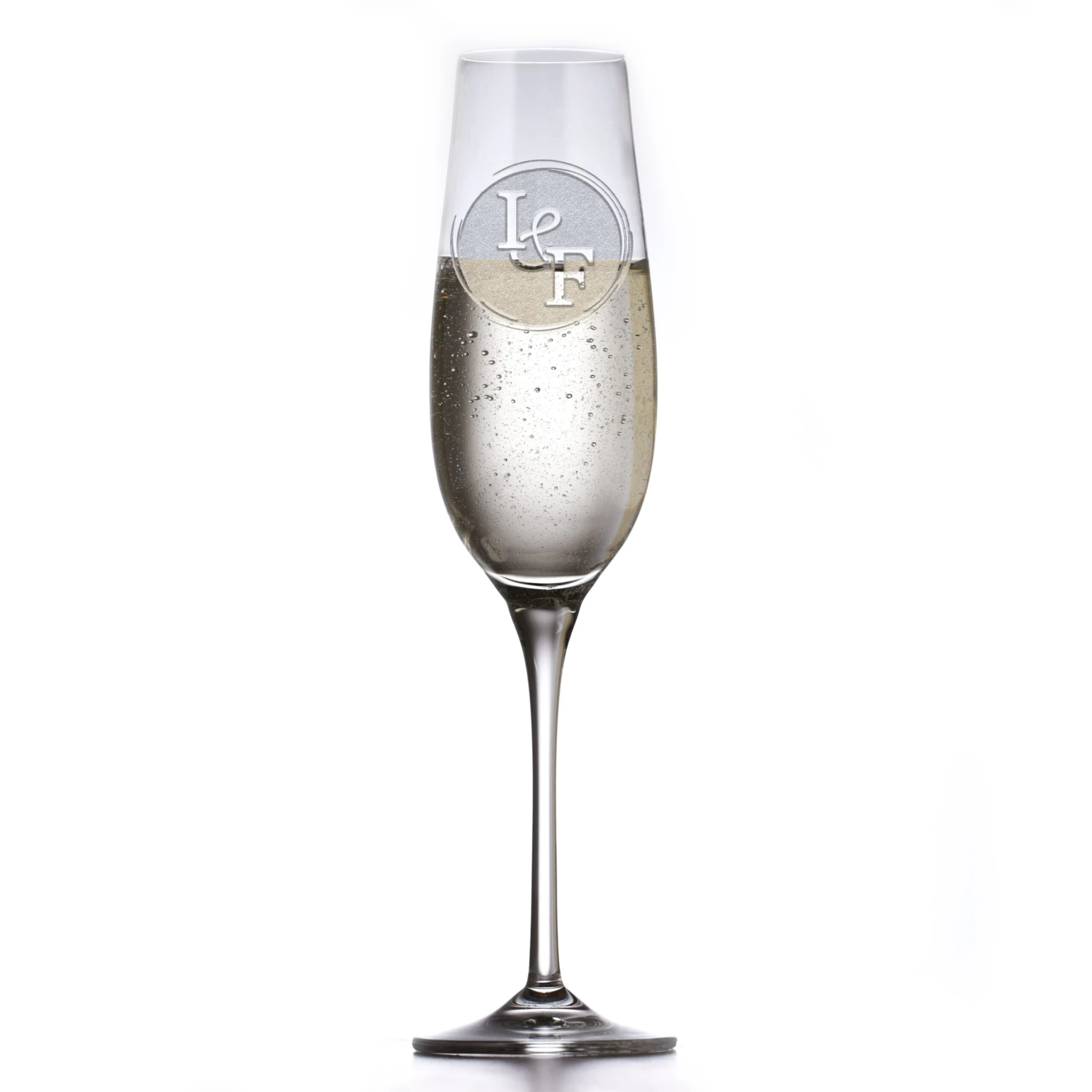 Couple’s initials engraved crystal champagne glass is a great gift for the wedding anniversary couple or bride and groom to celebrate any special occasion. Crystal Imagery’s custom engraved Ravenscroft Crystal champagne glasses are a cool and unique personalized gift for men and women who love their prosecco and mimosas. A gift for him or her, your loved ones will love the deeply carved couple’s initials monograms. Featuring a pulled stem and sheer rim, this durable, lead-free crystal champagne toasting flute by Ravenscroft is dishwasher safe, however, we recommend hand washing. Couple’s initials glass measures 9.5″ high and holds 7 ounces of your favorite champagne, Prosecco, mimosas, and more.