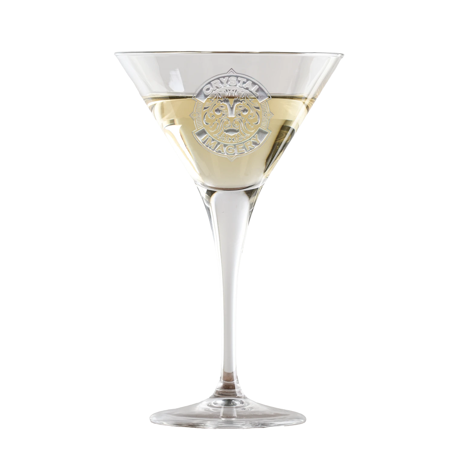 The crystal cosmo glass by Bormioli is a gorgeous collection of high quality custom crystal stemware. Deeply carved by us here at Crystal Imagery, our stemmed martini glasses offer you personalization options and a wide variety of engraved designs.