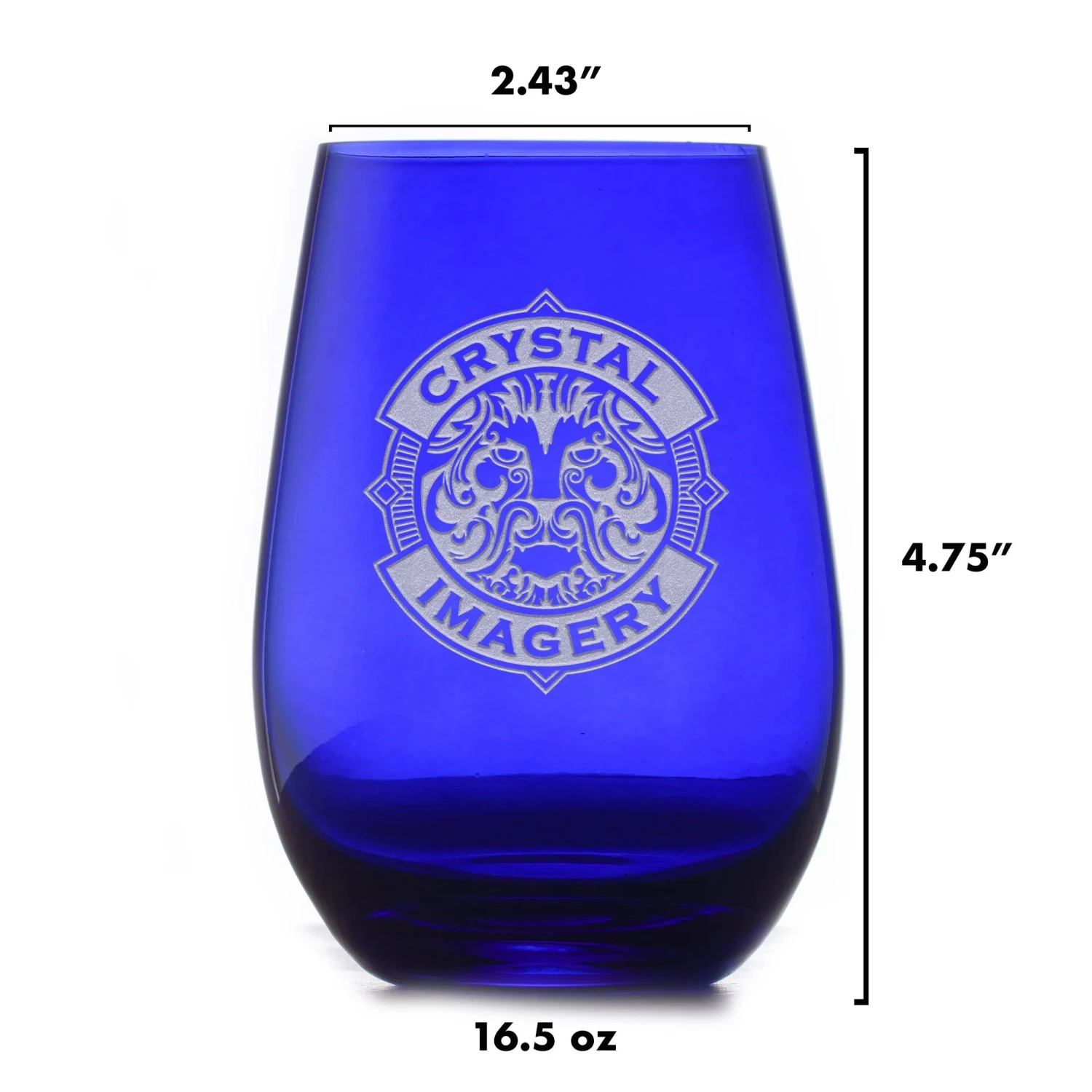 Custom engraved blue stemless wine glass tumbler features a monogram and last name. This Stolzle Elements 16.5 oz. cobalt blue tumbler, deeply etched and personalized by Crystal Imagery will be the gift you will love to give or get! Custom engrave your monogram or company logo while delivering the quality you’ve come to expect from Stolzle. Crystal Imagery prides ourselves with providing a deep-relief, 3D finish when we custom engrave your barware gifts. Our artisans use a sand-carving method that canÕt be matched by laser engravers and etchers. We blast away a background panel around the monogram or logo to create a finish that is jaw-dropping. This glassÕs organic color is what sets the Elements collection apart from traditional table settings. It’s beautiful and natural at once, giving your table and party a splash of color for a bold new look. Use it to serve wine, cocktails, soft drinks, and water. The versatile size makes it a favorite for nearly every occasion.