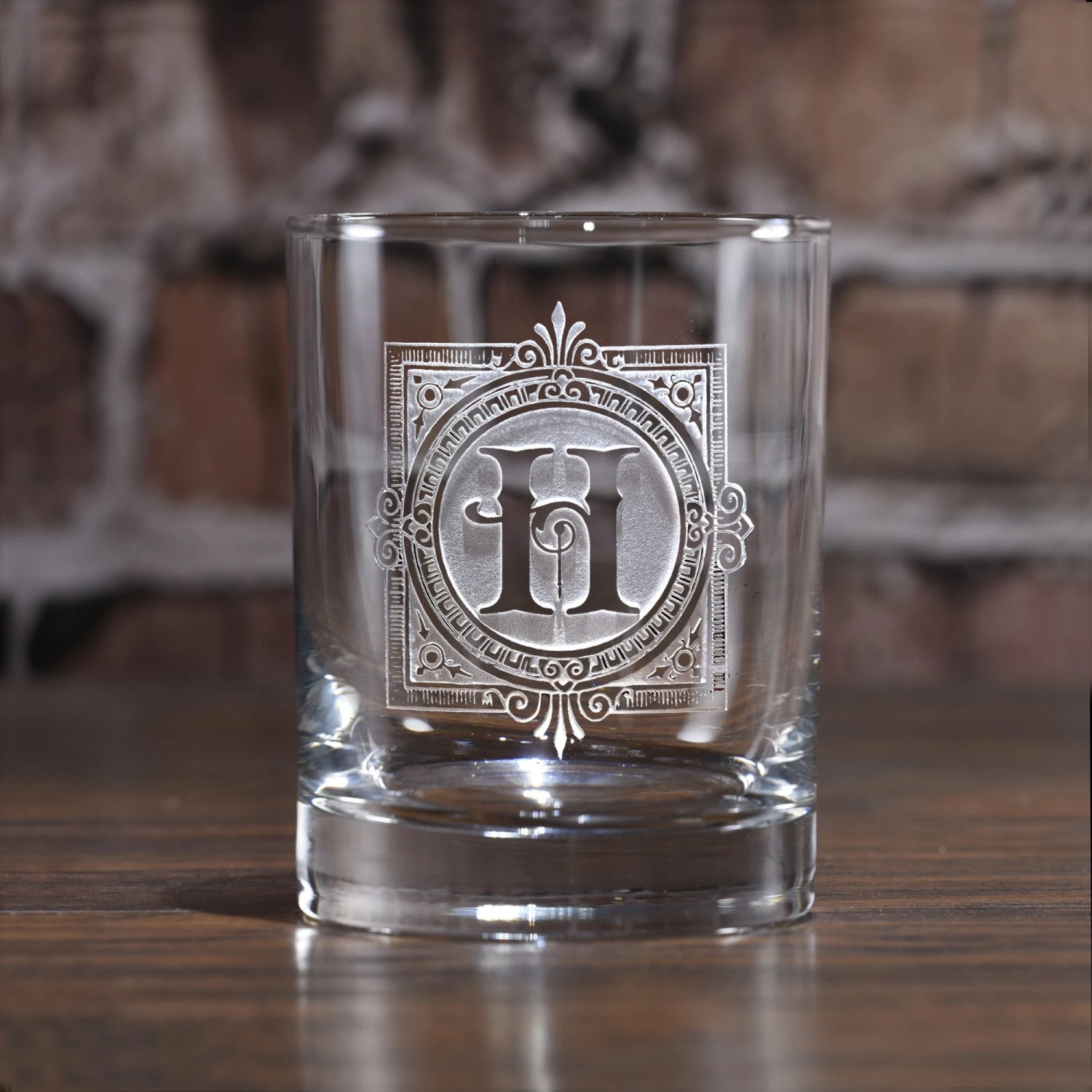 Custom engraved scotch glasses featuring a monogram initial design is a unique gift idea for men or women. Deeply carved using our sand carving technique, each whiskey, scotch, bourbon glass is meticulously custom made to order making it the perfect gift for those seeking unique gift ideas for whiskey lovers – men and women alike. At 4.25″ high x 3.4″ wide, our double old fashioned rocks glasses hold 13.5 oz. A set of these fancy scotch glasses will be the favorite gift at any special gift giving occasion. Dishwasher safe.