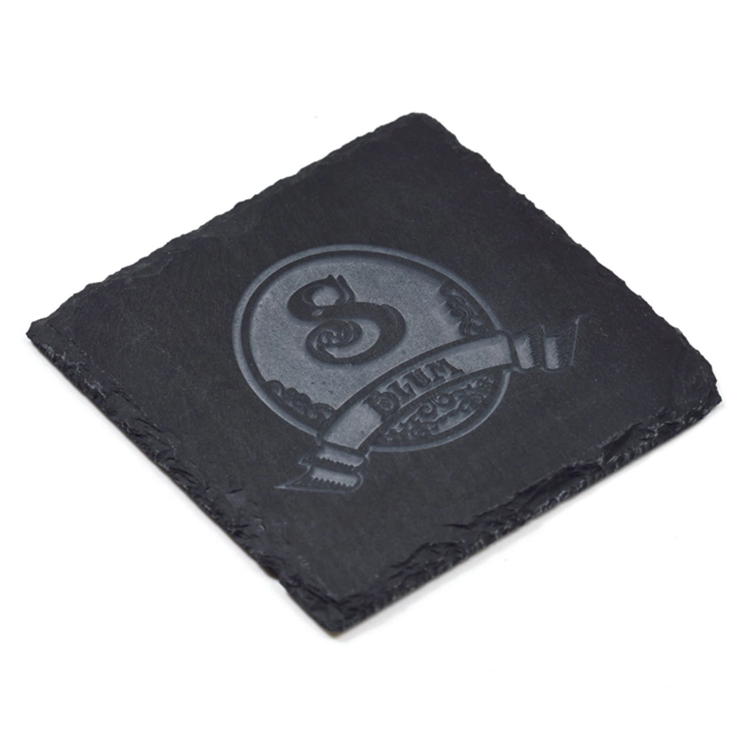 Our custom etched personalized square slate coasters offer a rustic and classic way to protect your tabletops and surfaces from glass condensation, while looking beautiful. Deeply etched, these monogrammed slate coasters feature EVA bottom pads to help avoid spills, and naturally edged rims that will add a finishing touch to the dcor of your space. Slate is a natural and durable material that can endure a wide range of temperatures Ð owners can feel safe using with both cold and hot drinks. Shop our square slate coasters custom engraved with a logo design or custom message to keep around your home wet bar, man cave or restaurant Ð you can even extend them as giveaway items or favors at upcoming events. Perfect wedding gift, housewarming or hostess gift for Christmas and other holidays.