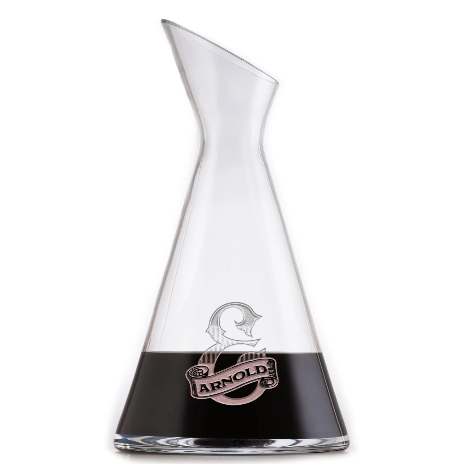 Custom Monogram Slant Wine Carafe Decanter engraved and personalized by Crystal Imagery. Serve wine, water, and other beverages with impeccable style in this etched Stolzle 86506 / 500091 slant 26.5 oz. glass decanting carafe!