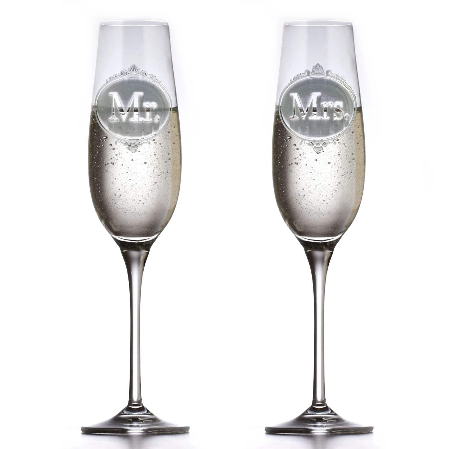 A set of these Mr and Mrs toasting flutes will be a memorable wedding gift for the bride and groom, birthday, anniversary or Christmas gift for him or her.