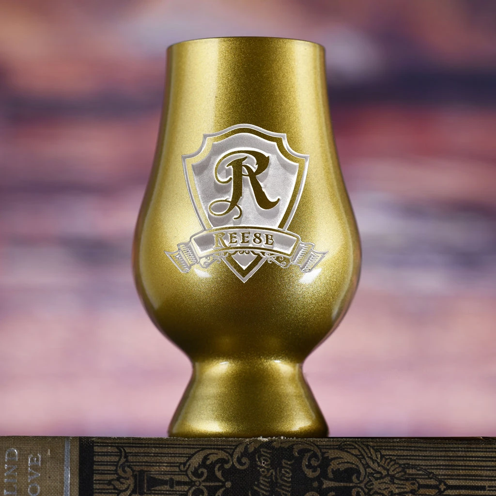 Part of the new colored range of Glencairn Whisky Glasses, The Gold Glencairn Glass has been designed for blind whisky tasting. Coupled with Crystal Imagery’s deep etching process, sandcarving, your glencairn glass will have the deep relief, 3D engraved finish that only Crystal Imagery can provide. Our deep engraved colored glencairn glass is sure to be a favorite heirloom gift for years to come.