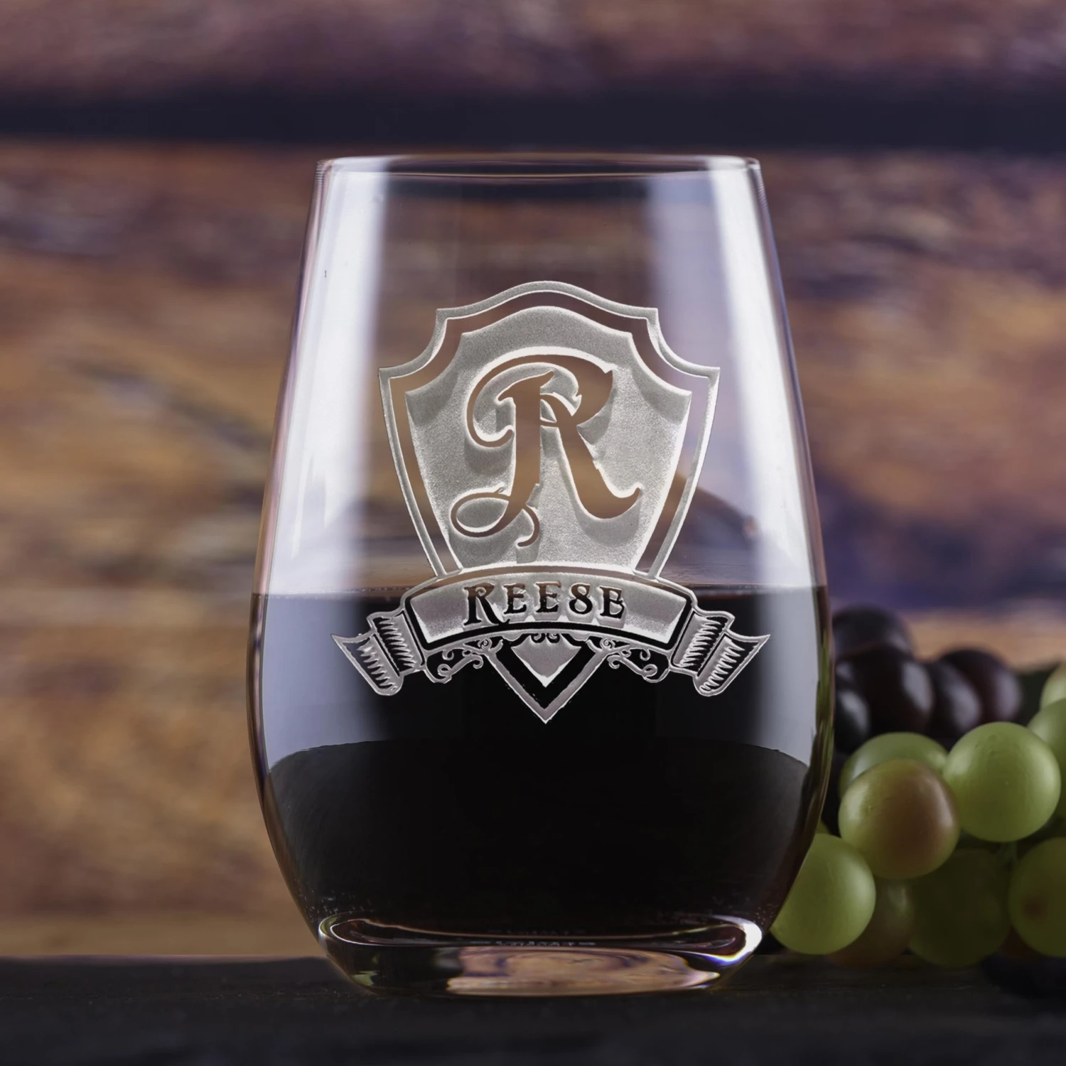 Engraved stemless wine glass tumbler. This Stolzle crystal stemless wine glass tumbler, deeply etched and personalized by Crystal Imagery will be the gift you will love to give or get! Custom engrave your monogram or company logo while delivering the quality you’ve come to expect from Stolzle. Crystal Imagery prides ourselves with providing a deep-relief, 3D finish when we custom engrave your barware gifts. Our artisans use a sand-carving method that canÕt be matched by laser engravers and etchers. We blast away a background panel around the monogram or logo to create a finish that is jaw-dropping. It’s beautiful and natural at once, giving your table and party a classic elegance. Use it to serve wine, cocktails, soft drinks, and water. The versatile size makes it a favorite for nearly every occasion.
