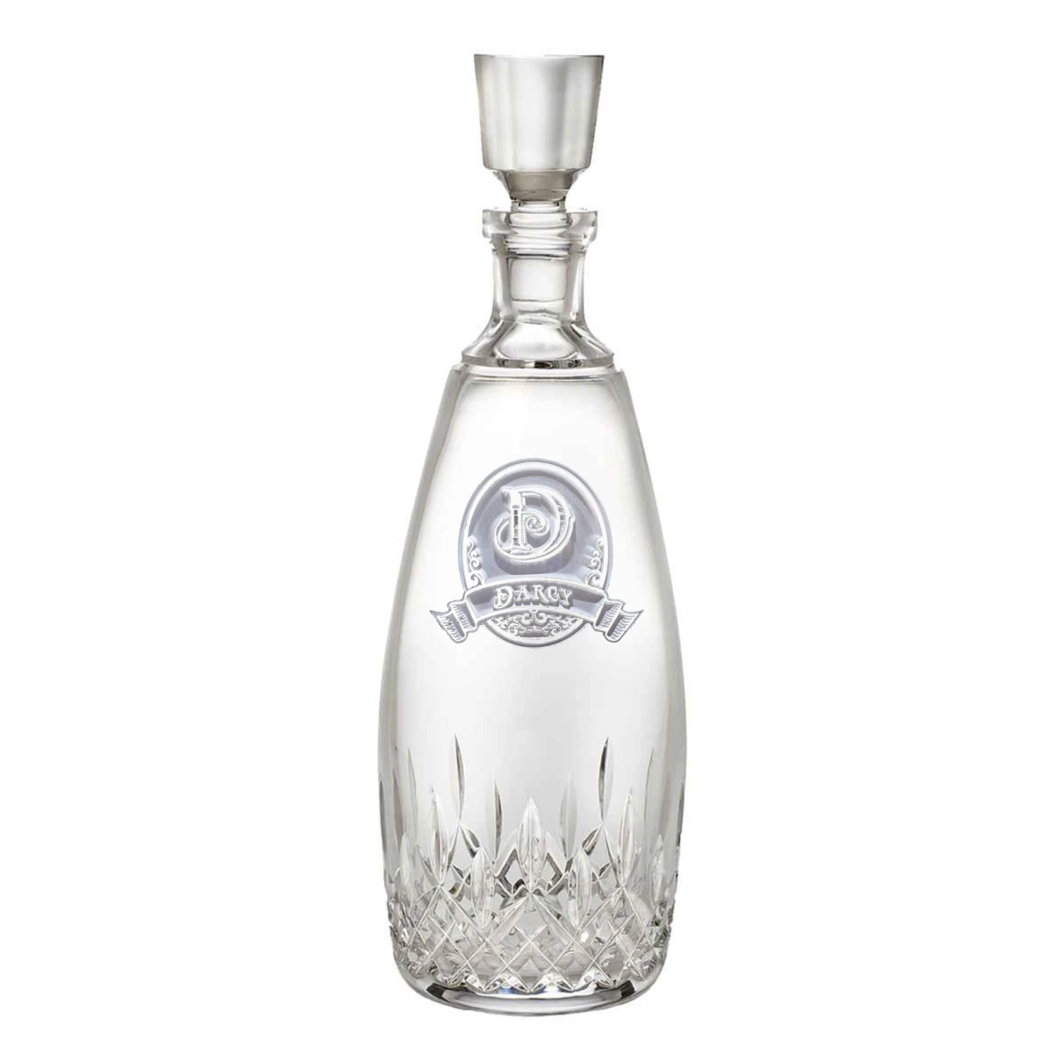 Engraved Waterford Crystal Decanter is the popular best selling Lismore Essence Decanter with Stopper and Free Personalization! Great for decanting your favorite whiskey, scotch, bourbon, rye, moonshine, brandy, or even wine, this exquisitely etched crystal decanter makes the perfect gift for men and women, especially for the man who has everything or the woman who has everything. Also a cool wedding gift idea, housewarming, hostess gift, retirement, anniversary, birthday or any special occasion gift for that special someone. Deeply carved using our sand carving technique, each glass decanter with glass stopper is carefully custom made to order by our master glass artisans making it a memorable addition to any home bar, bar cart, or man cave. Our engraving technique doesn t merely etch the surface like other glass engravers. Our process involves a five-step process resulting in a jaw-dropping 3D effect on your custom glassware and barware. Waterford Lismore Essence is the next generation of the classic Lismore pattern, retaining the brilliance and clarity of Lismore, while incorporating a more slender, modern profile. Add a new dimension to fine wines, brandy, and eau de vie by decanting them into the cool, contemporary Lismore Essence Decanter with Stopper. Combining traditional decanter styling with a slimmer profile, the decanter highlights Lismore’s dramatic diamond and wedge cuts while retaining the comforting weight and stability you expect from Waterford’s hand-crafted, fine crystal. Waterford crystal barware item code 151746, Free Personalization, Free Engraving! Hand wash. Read detailed Waterford Crystal care instructions on our Customer Service page found at the bottom of each page on our site. Glass decanter with glass stopper holds 36 oz. and measures 12 3/4 high. WARNING: Consuming foods or beverages that have been kept or served in leaded crystal products or handling products of leaded crystal will expose you to lead, a chemical known to the State of California to cause birth defects or other reproductive harm.