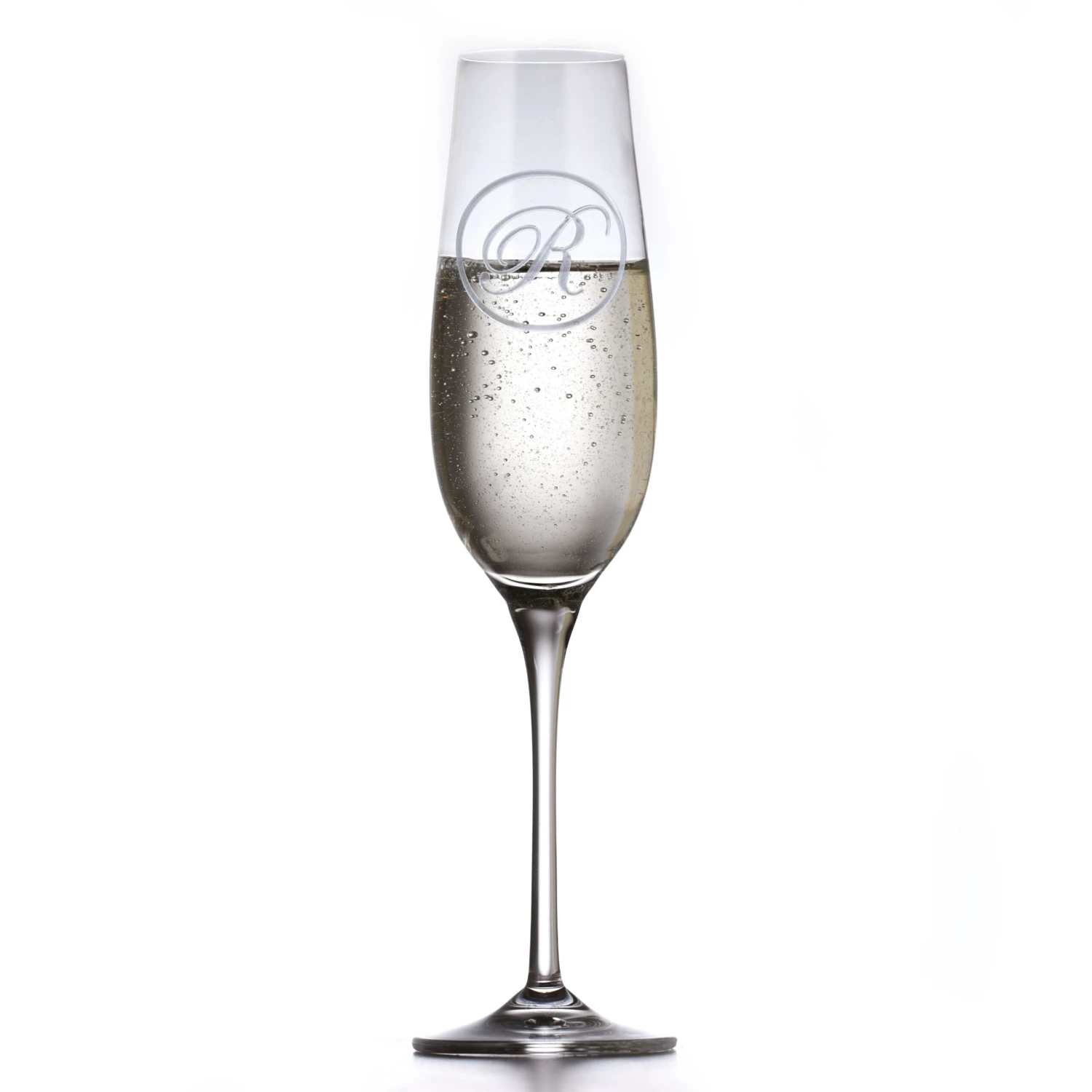 The Etched Monogram Ravenscroft Crystal champagne glass is a cool and unique etched gift for him or her. Mimosa and Prosecco lovers will adore the deeply carved design creating a 3D surface on the toasting flute. Our unique carving method makes it a truly special gift for a wedding, birthday, anniversary and more. Featuring a pulled stem and sheer rim, this durable, lead-free crystal champagne toasting flute by Ravenscroft is dishwasher safe, however we recommend hand washing. Measures 9.5″ high and holds 7 ounces of your favorite champagne, Prosecco, mimosas, and more.