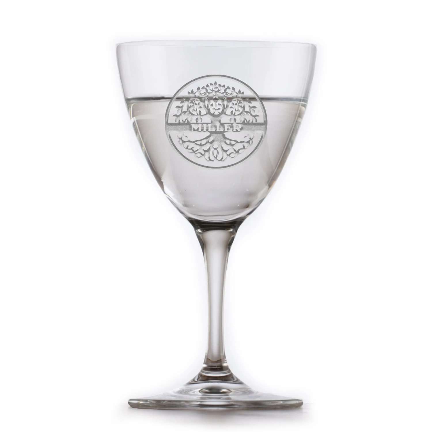 Family Tree custom Nick and Nora Martini Glass engraved by Crystal Imagery. Perfect for cocktails including sidecars, gin rickeys, manhattans, and martinis, this Stolzle 4790005T 5.75 oz. Nick and Nora vintage martini glass features a rounded bowl that’s easier to sip from than a traditional martini glass.