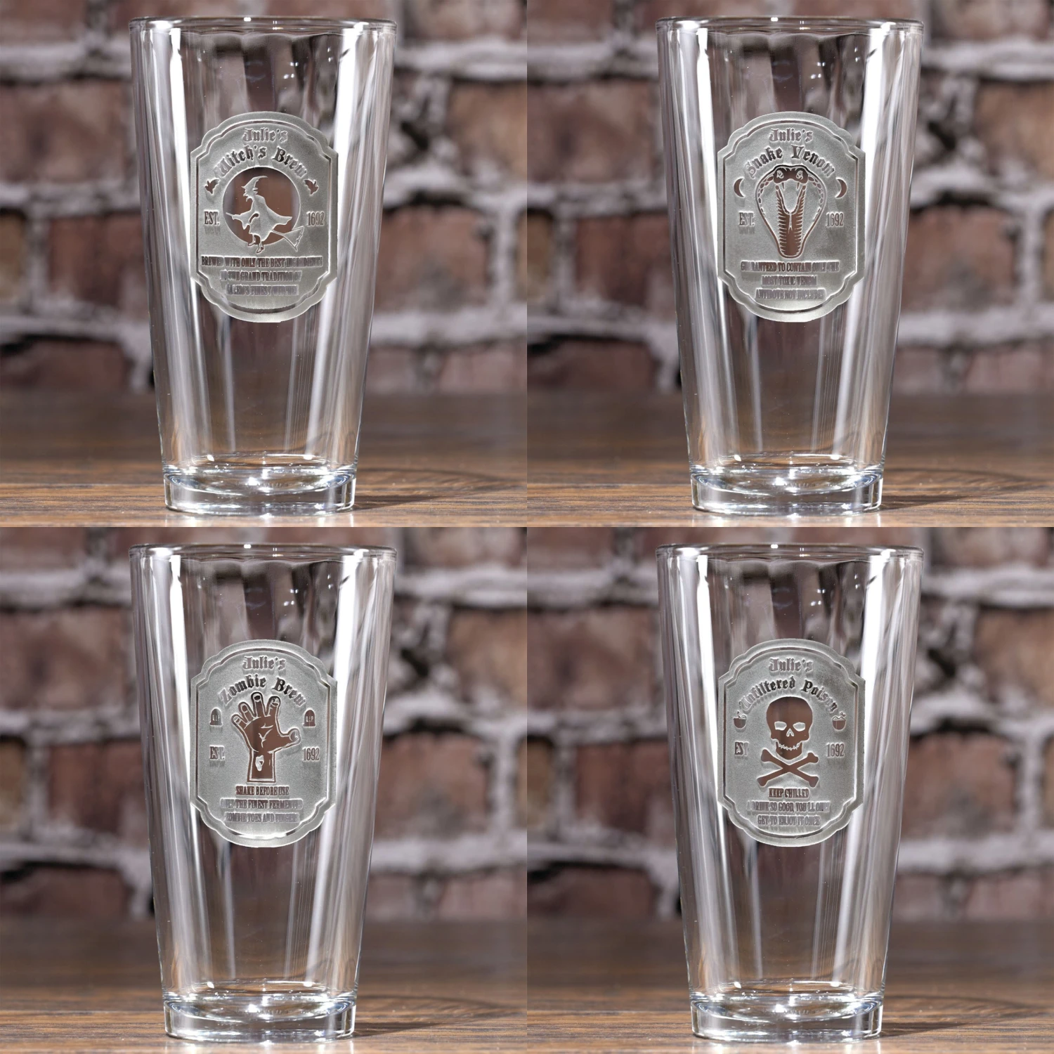 Halloween is a time for trick-or-treating and costume parties for adults. What better way to embrace your ghoulish nature than to serve your favorite spooky spirits, creepy potion, or witch’s brew in this deeply carved set of Halloween drinking glasses? Perfect for beer, mixed drinks, iced tea, or any poison of choice!