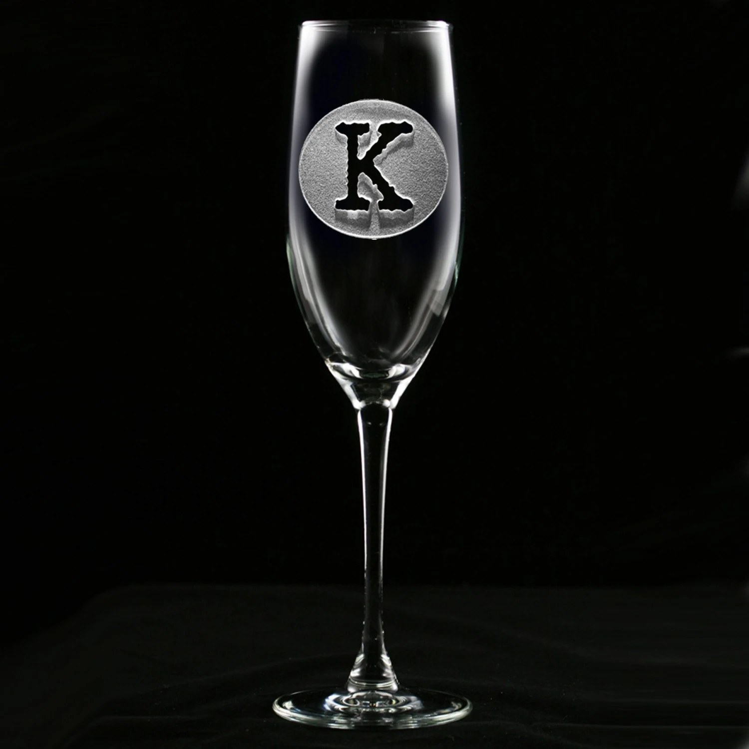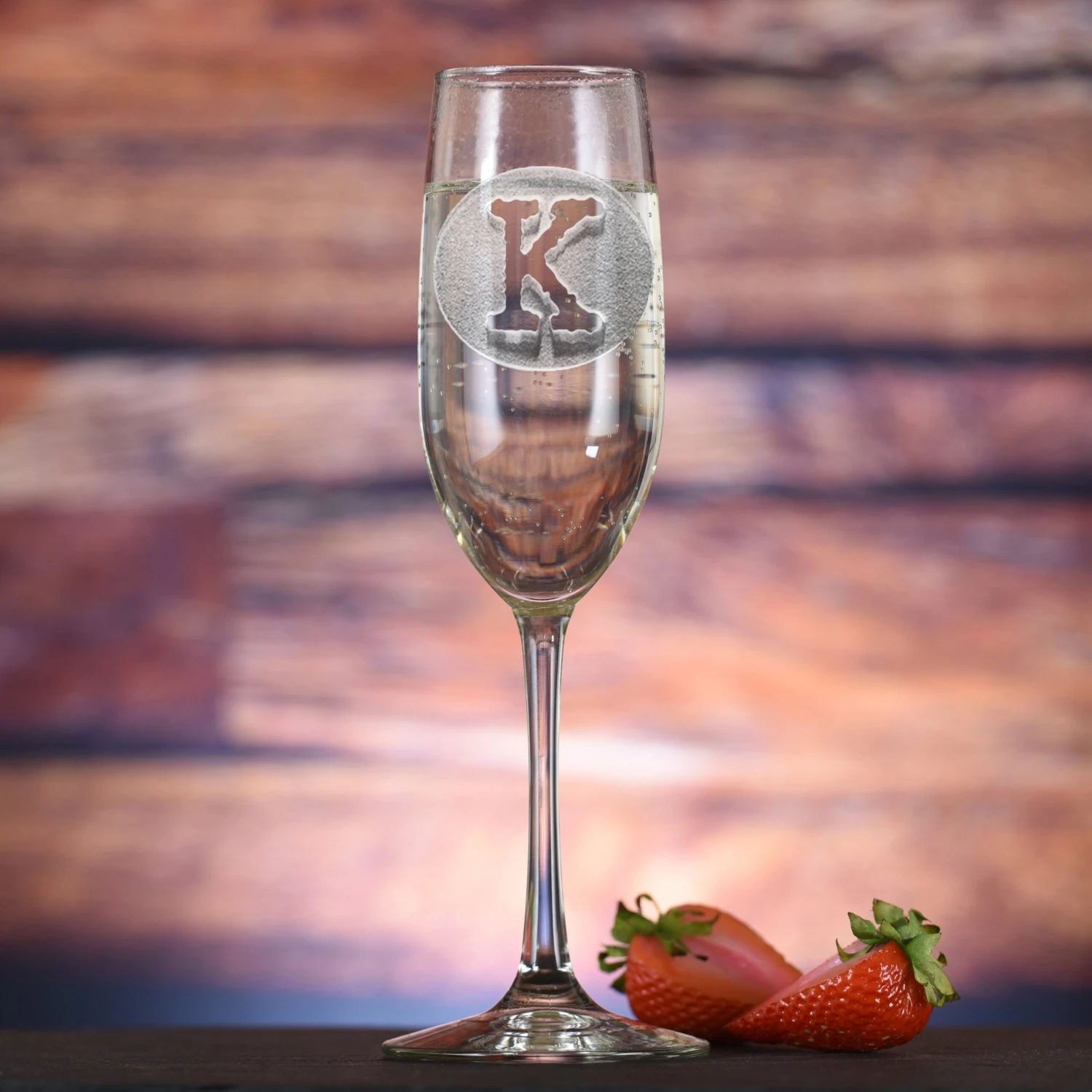 Initial Circle Engraved Champagne Toasting Flute, Custom Wedding Gifts