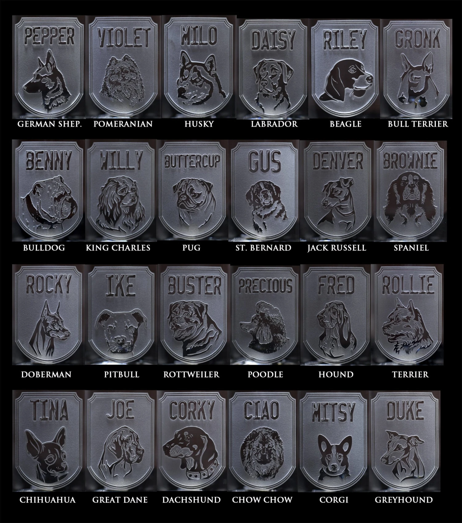 Choose your dogs’ breed then personalize it with a name! We deeply carve the dog’s image and your pet’s name into the beer mug so you can enjoy your favorite beer, craft or home brew in style. Man’s best friend dog beer mugs are the perfect gift for the dog lover in your life. Our sand carving method far exceeds the quality of engraved and etched glassware and barware on the market elsewhere.