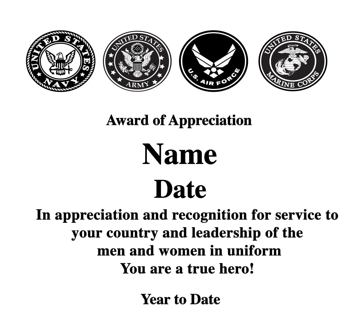 Military award is beautifully engraved on this high gloss black wall plaque with etched glass overlay, is the best award plaque you could give your recipient. This custom military plaque is also a perfect gift for the Army, Navy, Air Force, or Marines officer or enlisted who have made a difference in the lives within your community and for our country. Those who have served deserve our thanks and appreciation.