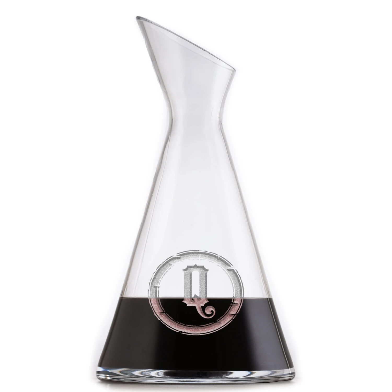 Monogram Engraved Slant Wine Carafe Decanter custom etched by Crystal Imagery. Serve wine, water, and other beverages with impeccable style in this Stolzle 86506 / 500091 slant 26.5 oz. glass decanting carafe!