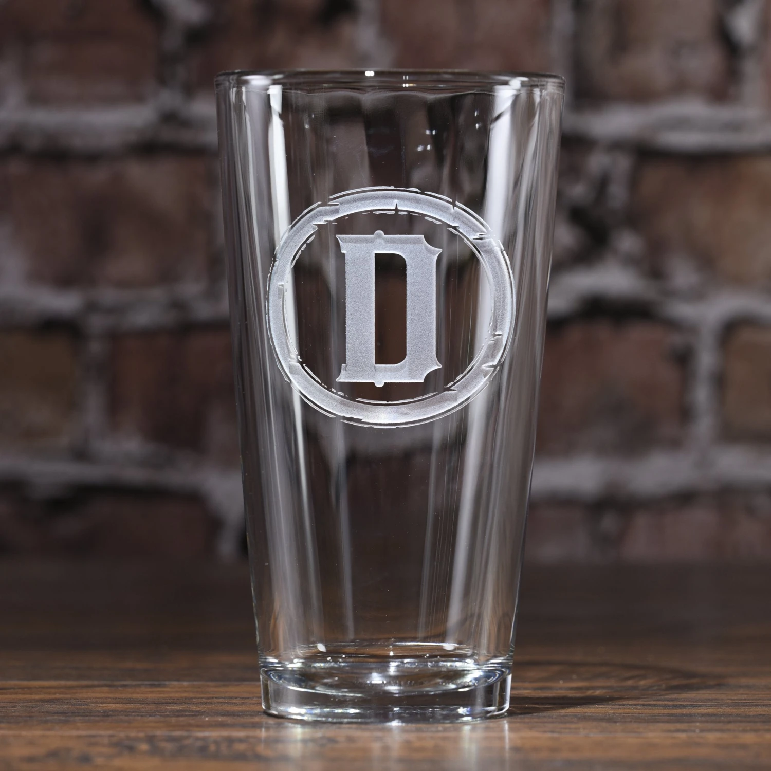 Hand crafted and deeply sand carved in the USA by our master sand carvers, your monogram is meticulously engraved into this sturdy pint pub glass which is perfect for as a water glass, beer glass or iced-tea glass. Give a set of these pub glasses as a memorable wedding gift or anniversary gift. Need a hostess gift or housewarming gift? Give our monogrammed pint glasses and your gift recipient will be thrilled. Measures 6′ high by 3.5′ wide. At 16 oz, our pub glass will hold plenty of your favorite beverage. Dishwasher safe. Made in the USA.