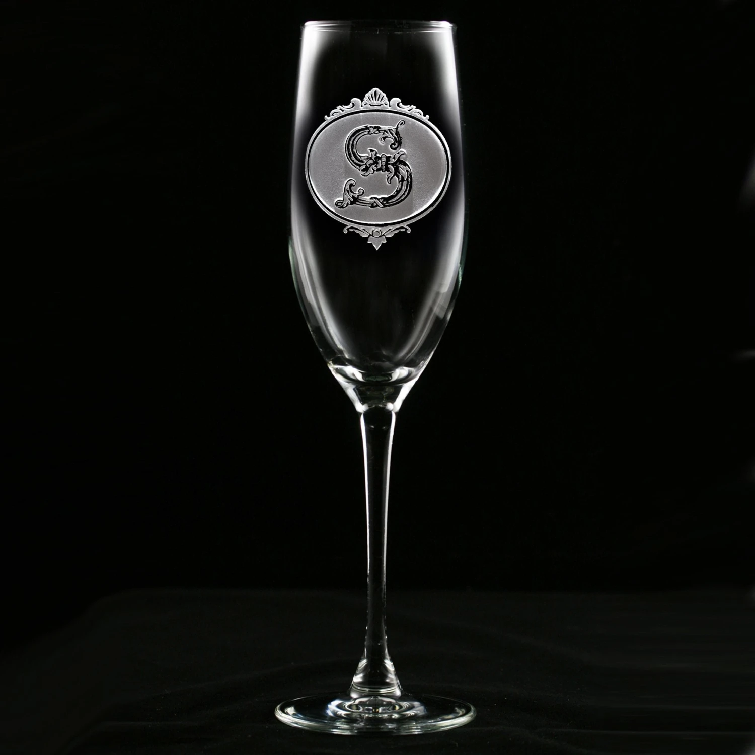Personalized custom engraved etched champagne flute toasting glasses. Deeply carved using our sand carving technique, each of our custom champagne flutes or champagne glasses are meticulously custom made to order making them the perfect gift for those seeking unique gift ideas for sparkling wine or champagne lovers – men and women alike. At 9.5″ high x 2″ wide, our champagne flutes and glasses hold 8 oz. A set of these etched, engraved champagne flutes will be the favorite gift at any special gift giving occasion. Personalized or monogrammed champagne glass sets are a unique and special bridal shower gift, engagement gift, wedding gift or engagement gift. Dishwasher safe.