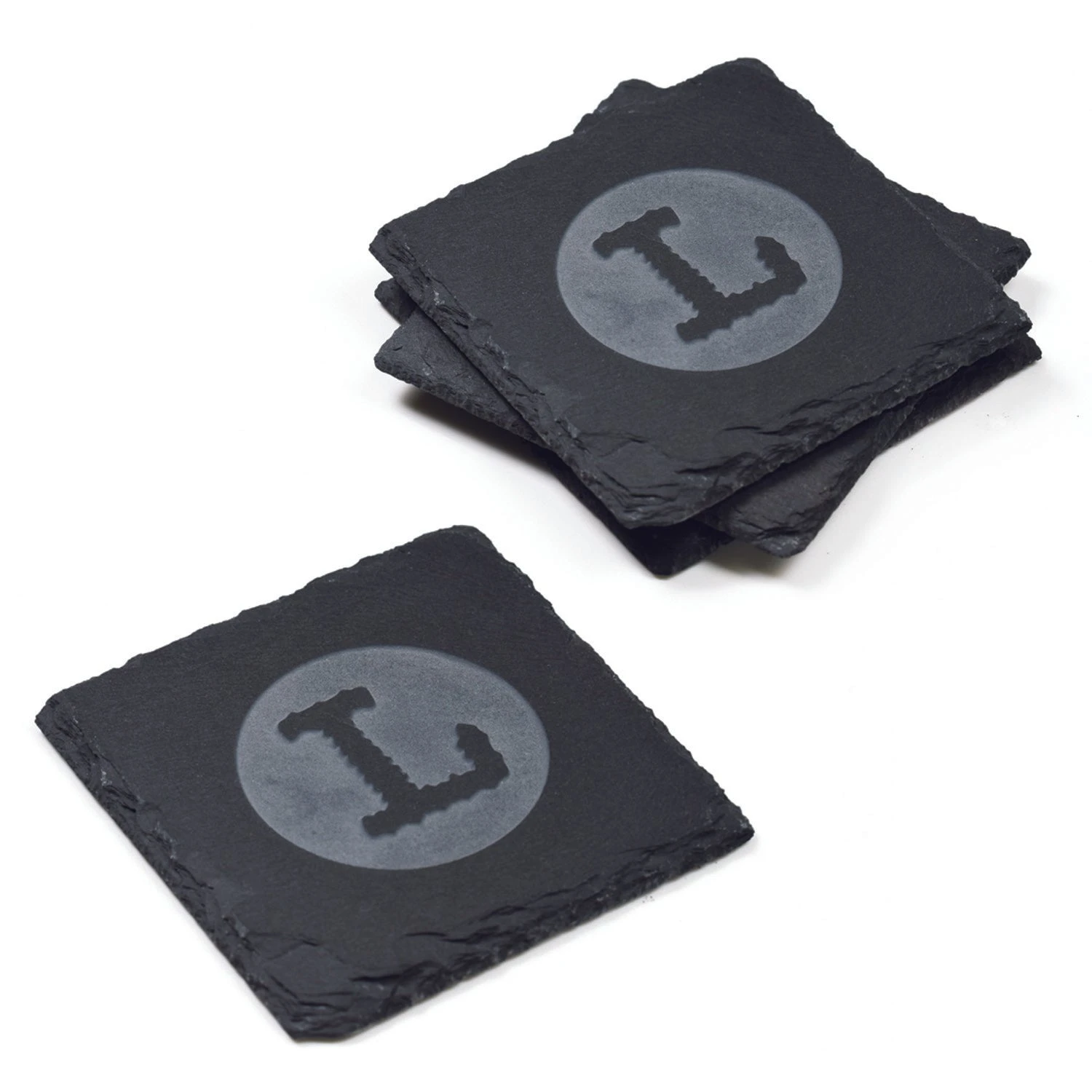 Sold as a set of 4 slate coasters which features your typewriter font monogram initial raised from the carved out background proudly engraved into the coaster.