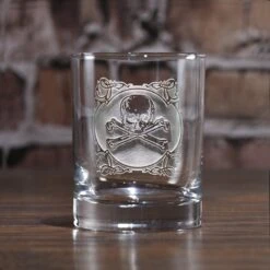 Engraved Skull And Crossbones Stolzle Crystal Rocks DOF Glass