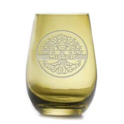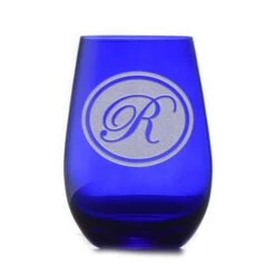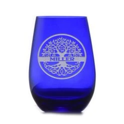 Custom Etched Blue Stemless Wine Glass Tumbler | Crystal Imagery