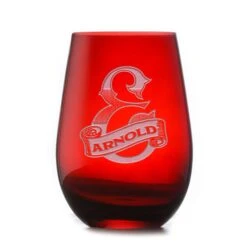 Custom Etched Red Stemless Wine Glass Tumbler | Crystal Imagery