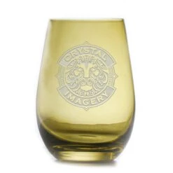 Your Logo Engraved Green Stemless Wine Glass By Crystal Imagery