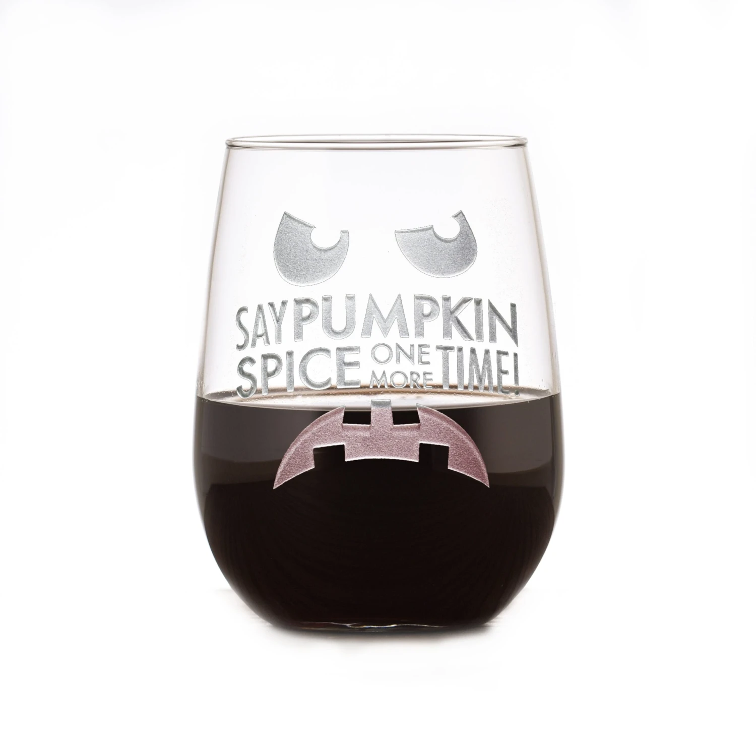 Our perfect Pumpkin Spice haters gift is this funny stemless wine glass with a frowning jack-o-lantern and the statement, “Say Pumpkin Spice One More Time!” Tis the season for Pumpkin Spice everything! The leaves have begun turn colors and to fall, the chill is in the air, and the pumpkin spice lovers have started bringing out the orange stuff, the gourds, jack-o-lanterns and pumpkin themed sweaters and sweatshirts. ItÕs time for hot apple cider, pumpkin pie and hot cocoa as well as the ever popular pumpkin spice latte. The pumpkin lovers are in full swing decorating their porches and windows, not to mention burning those pumpkin scented candles.