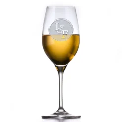 Crystal White Wine Glass, Etched Initials Bride And Groom Gift