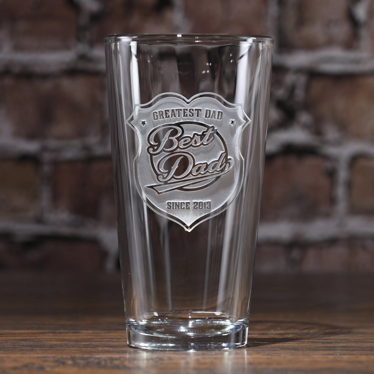 World’s Best Dad pint glass is a cool Father’s Day Gift or birthday gift for your dad. Custom engraved with his name and the year he became a father to truly personalize this special gift for dad! Great for beer, water, iced-tea, soda pop and everyday beverages.