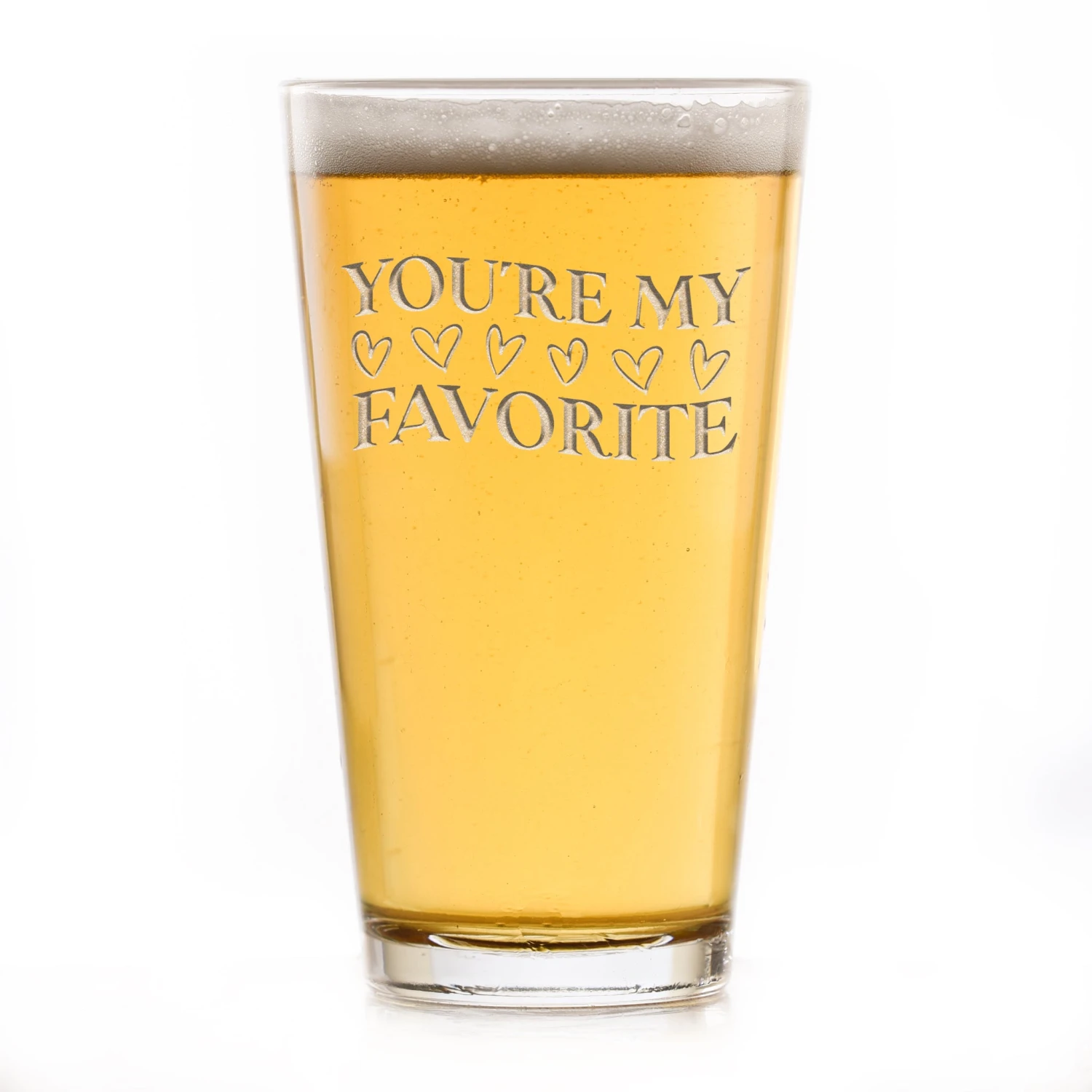 You’re My Favorite Engraved Pint Beer Glass Gift Our engraved pint glass is a great reminder of those early days of falling in love with your sweetheart. This etched pint glass makes a memorable gift for your boyfriend, husband, girlfriend, wife for Valentines Day or anniversary.