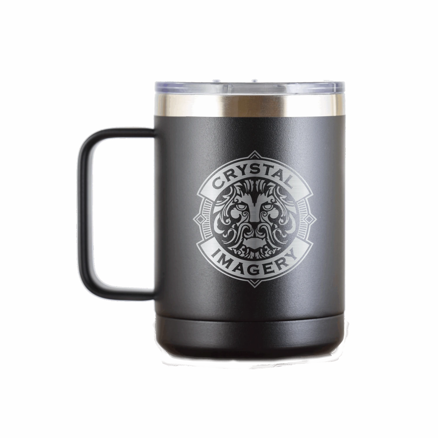 Your own logo or artwork laser engraved on a Yeti style coffee mug tumbler with handle by Polar Camel. The perfect company or corporate promotional gift product to support your business or the business of a colleague. You can also create your own black and white image, upload the file and create custom logo tumblers for any special occasion.